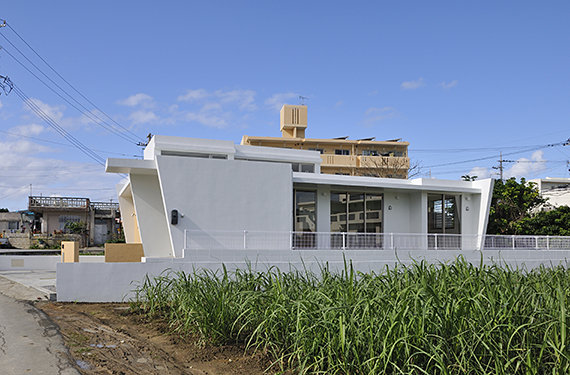 周りに畑や水路などがある長閑な地域に建つ平屋建ての住宅です。