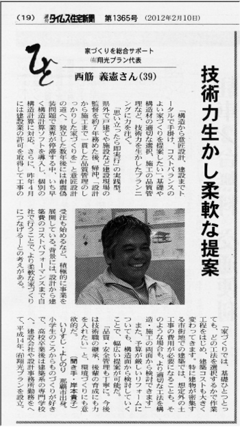 2012年2月10日のタイムス住宅新聞1365号の「ひと」に掲載されました。