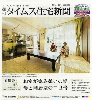 2014年3月21日のタイムス住宅新聞1473号の「お住まい拝見」に、I 邸が掲載されました。
