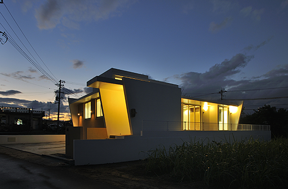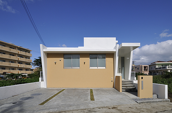 周りに畑や水路などがある長閑な地域に建つ平屋建ての住宅です。