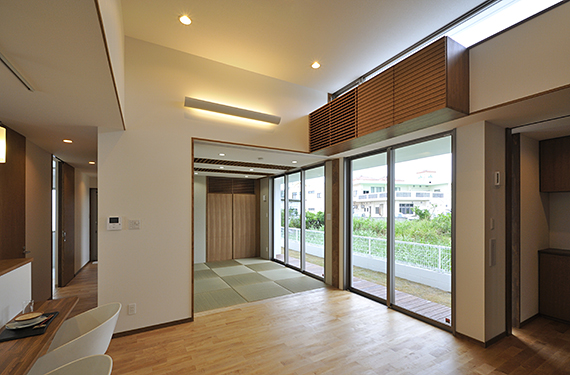 敷地の地盤を周囲の土地よりも上げることによって、平屋でありながら見晴らしがよく、採光・通風にも優れた計画としました。